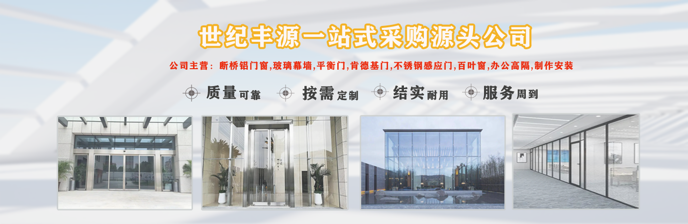 天津世紀豐源門窗有限公司從事斷橋鋁門窗,玻璃幕墻,平衡門,肯德基門,不銹鋼感應門,百葉窗,辦公高隔,制作安裝一站式訂制生產及配套服務等。  公司自成立以來,始終堅持以人才為本、誠信立業的經營原則,薈萃業界精英,成熟的技術、管理方法及企業經驗與國內企業的具體實際相結合,為企業供給各個方面的解決方案,使企業在激烈的市場競爭中始終堅持競爭力,實現企業快速、穩定地發展。  質量好、服務好、才能信譽好,公司已在諸多領域取得輝煌成績,愿意成為您可信賴的長期合作伙伴。  讓我們攜手同行,共同實現“讓普通老百姓都用得上高端門窗”...